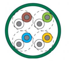 17341, Rézkábel; Kompatibilitás: Cat5E, külső fólia árnyékolás, érpáranként nem árnyékolt; Árnyékolás típusa: köpeny alatti közös fólia árnyékolás, fa