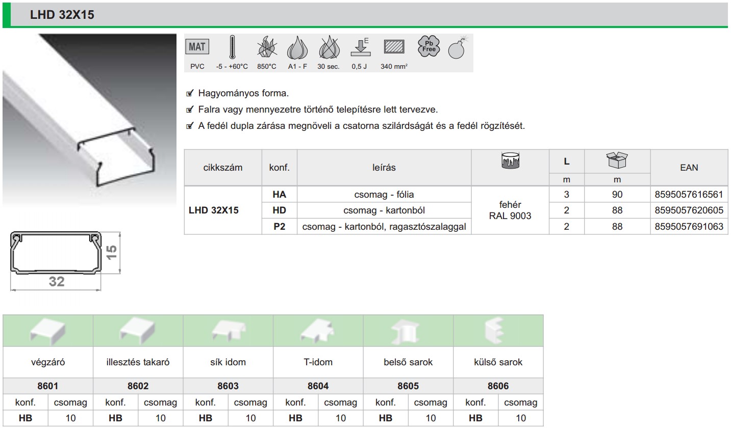 Kcs 32x15mm végzáró LHD fehér 8601 HB Kopos | |