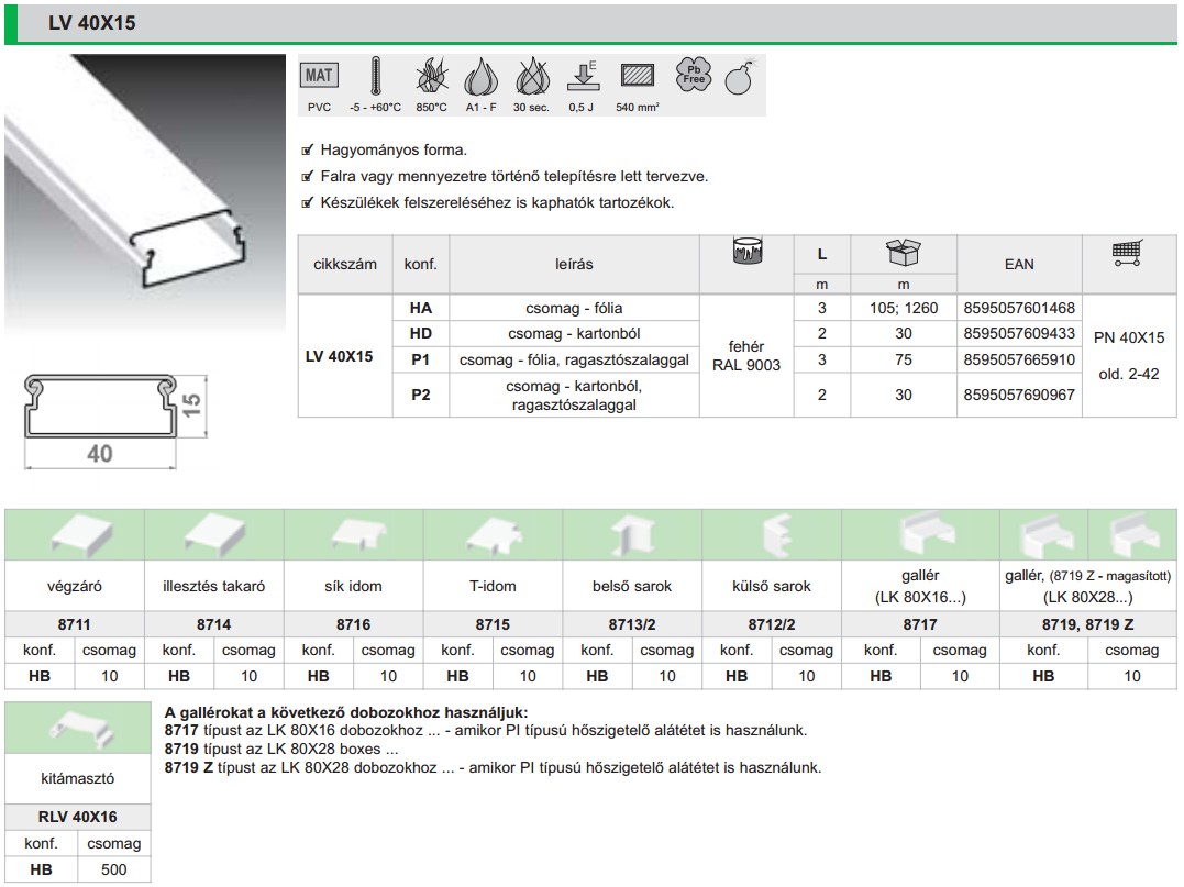 Kcs 40x15mm végzáró LV fehér 8711 HB Kopos | |