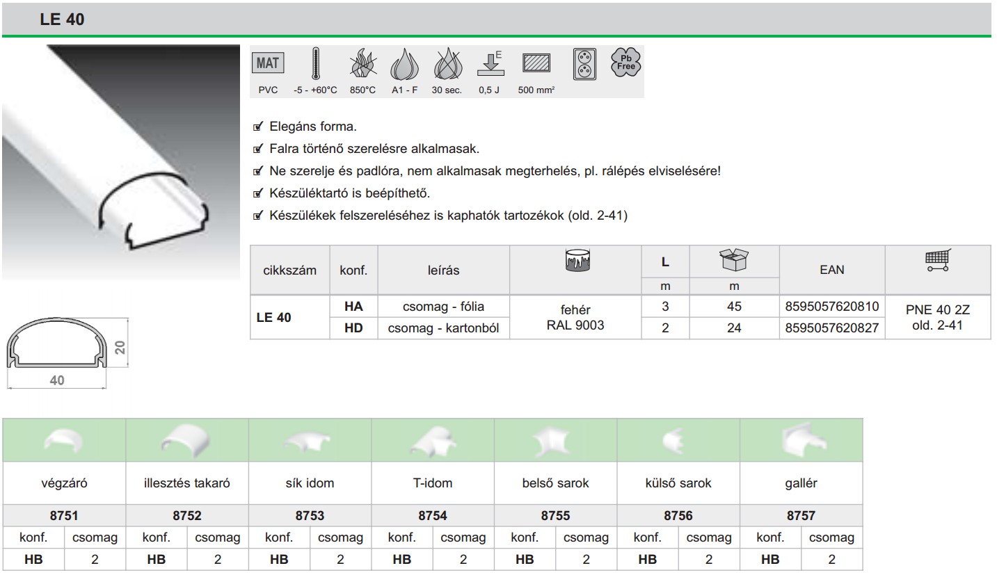 Kcs 40x20mm külső sarok LE fehér 8756 HB Kopos | |