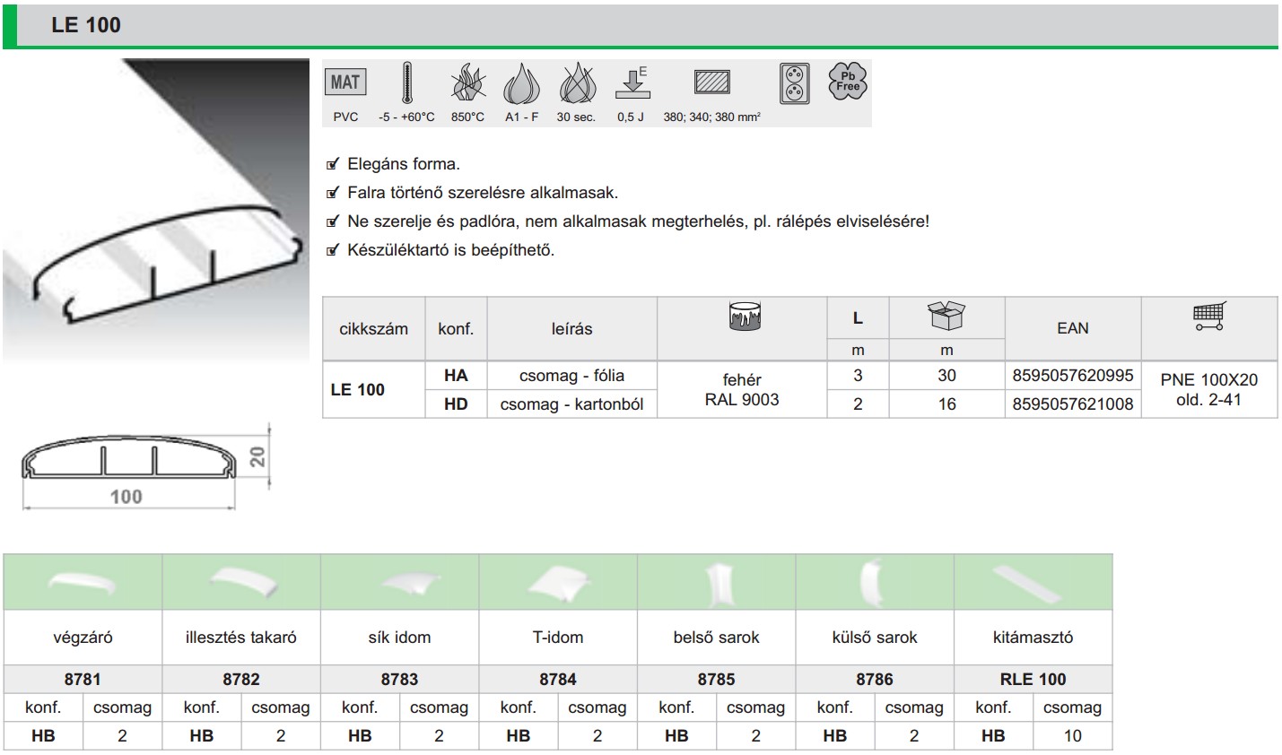 Az LE (40; 60; 80; 100) típusú, készülék-dobozokkal ellátott csatornák falra, való szerelésre alkalmasak. Ne szerelje és padlóra, nem alkalmasak megterhelés, pl. rálépés, viselésére.