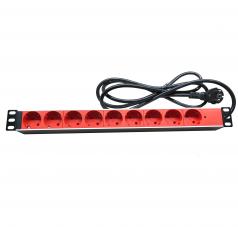 PDU (Power Distribution Unit) - Elosztó, 1U; Csatl. száma: 9 db; Csatl. fajtája: CEE7/4 (DIN49440), kapcsolós nélküli, LED tápellátás visszajelzővel,
