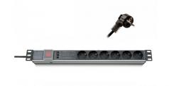 PDU (Power Distribution Unit) - Elosztó, 1U; Csatl. száma: 6 db; Csatl. fajtája: CEE7/4 (DIN49440), kapcsolós, túlfesz. védett; Telepítés: rack/fali;